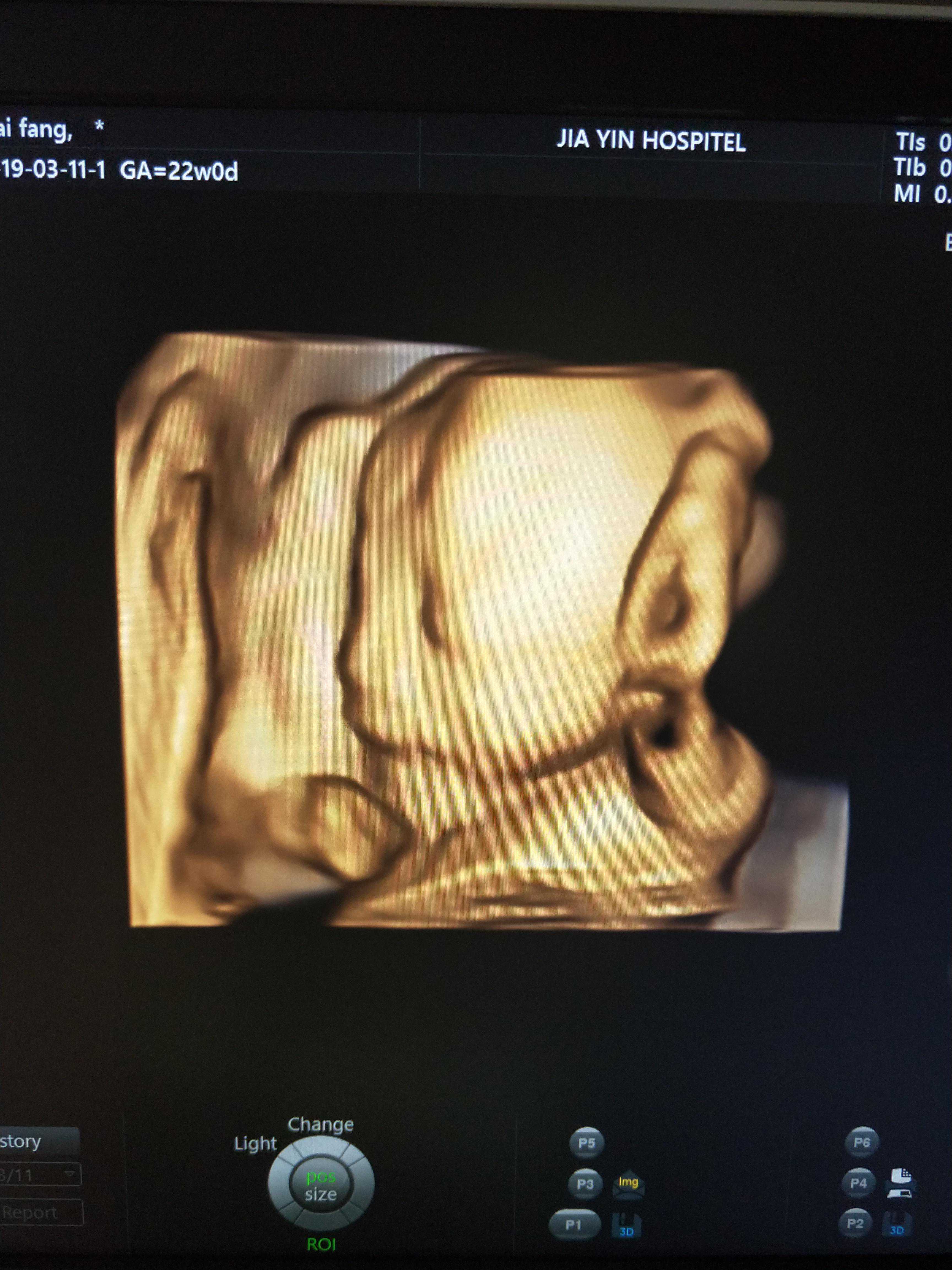 熬到20周做四维的时候正好我老公又出差,每次他在关键时刻掉链子,那天我和二姐早早就去了,人不多,但也遇到问题了,一个胎儿看了两遍就全看清楚了没有问题,另外一个不活动,后背的地方看不到,于是医生就让我先走走,走完过了一个小时左右测的还不行,然后让我跪在床上十五分钟再试试,还不行,折腾了一上午也没把另外一个胎儿看清楚,没办法下午继续。