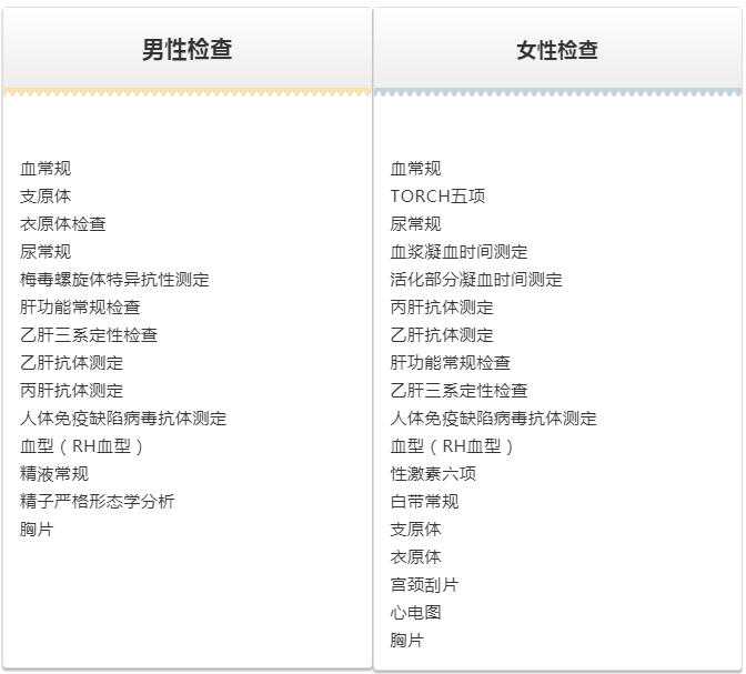 夫妻双方都需要到正规医院进行相关体检,以此来确定是否符合进行试管婴儿手术,为避免大家一脸懵逼地看着我,小编把夫妻双方要做的检查给大家罗列出来,不过每个医院的情况可能会有一点差别,另外根据个人身体情况不同,可能某些项目有增减,大家可做参考。