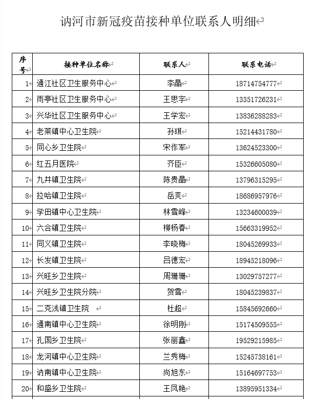 附:疫苗接种单位联系表