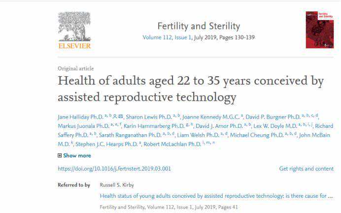 结论得出:在全球范围内,试管婴儿成年后呼吸系统和正常人没有区别,也没有心脏病上升风险。