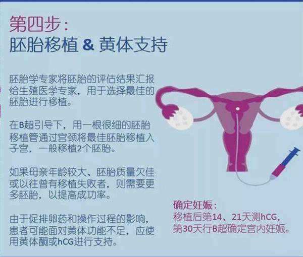 4、胚胎移植:用很细的导管经宫颈进入子宫,然后将胚胎通过导管注入宫腔。有的生殖中心采用B超引导下胚胎移植技术,有助于提高试管婴儿的成功率。移植后静卧1-2个小时就可以直接回家。24-48小时内避免剧烈活动。移植胚胎的数目依据患者的年龄、曾经怀孕与否及胚胎的质量决定。