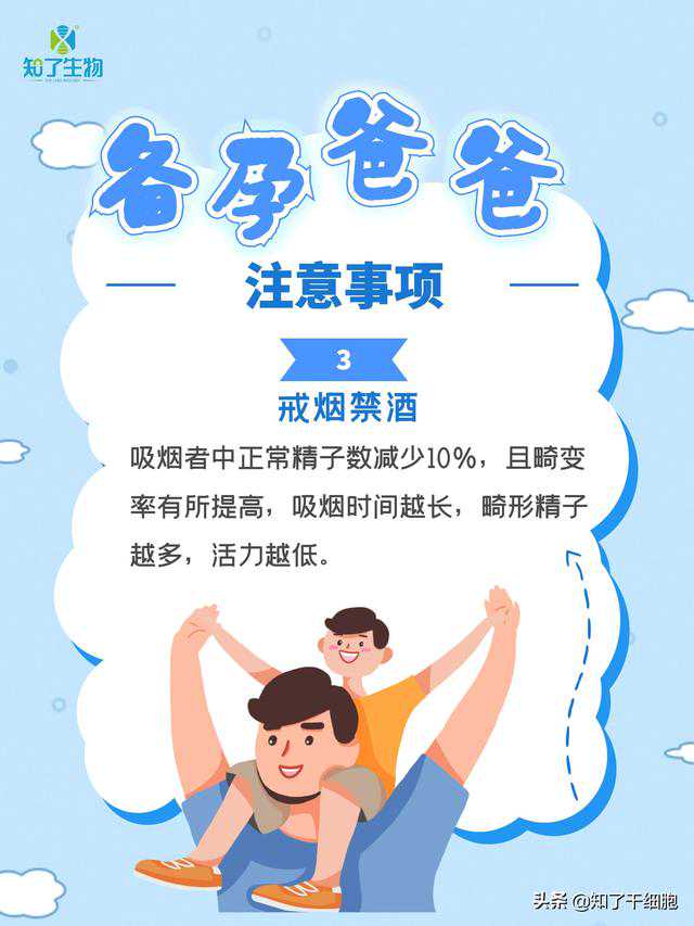 说起备孕,很多人都习惯性地以为是孕妈妈的事,父亲则不需要做什么。其实,备孕是一件需要夫妻双方都参与进去的事情,一个新生命的诞生,是双方的结合,因此,备孕期间的爸爸,也承担着重要的角色噢。知了姐姐今天就给大家讲一下,备孕爸爸需要注意的那些事儿~