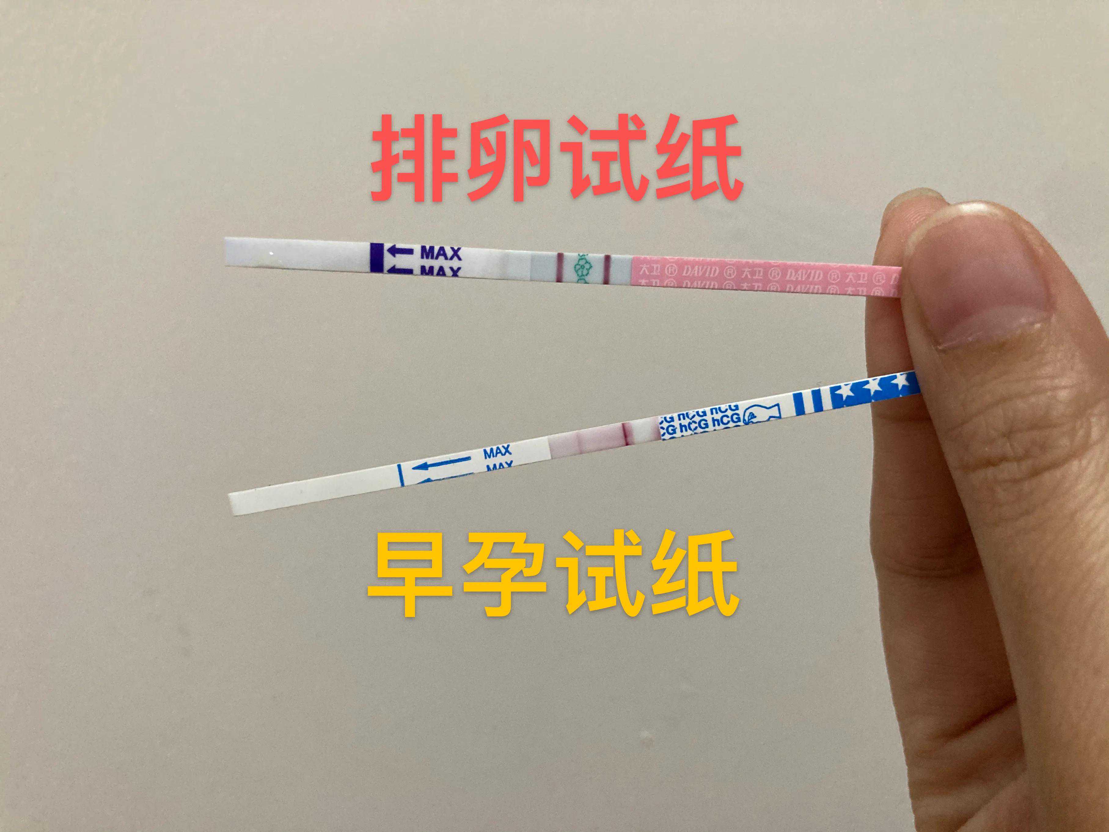 第八天晨尿我用排卵试纸和早孕试纸同时测,好像明显了,排卵试纸双杠红的发紫,早孕试纸浅浅双杠。