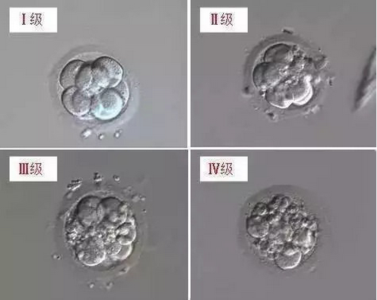 第一张(左上)图片,即为8细胞Ⅰ级的胚胎,简记为“8Ⅰ”。第二张(右上)图片,即为8细胞Ⅱ级的胚胎,简记为“8Ⅱ”。级别的好坏,依次是Ⅰ级>Ⅱ级>Ⅲ级>Ⅳ级。Ⅰ级和Ⅱ级统称为优质胚胎,Ⅰ级、Ⅱ级、Ⅲ级统称为可移植/可冷冻胚胎。