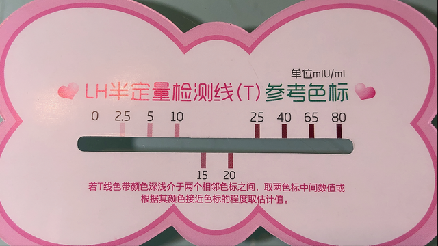 拿到手一对比,与普通的排卵试纸相比较,半定量仅仅是多了一张比对卡。这张卡片上标出来了一些数值,用以参考,