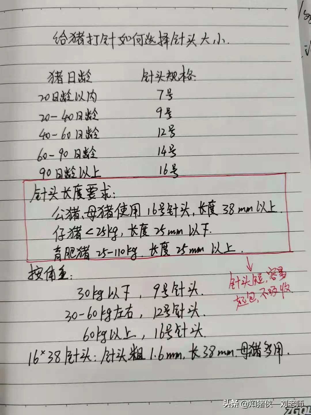 11.打疫苗的时候要根据猪的大小,选择合适的针头,疫苗是要打到猪脖子上的肌肉层,打得太浅会鼓包,免疫失败