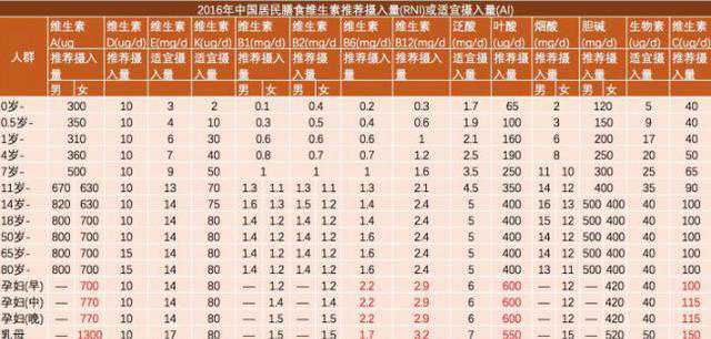 附各个年龄阶段人体所需要的维生素及矿物质含量表(红色为孕期):