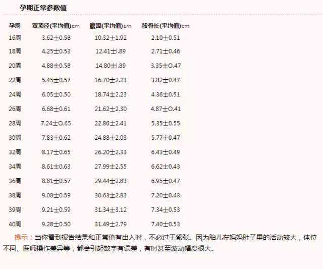 那么多数据,最需要关心的是哪几项呢?一般情况下,我们要关心的主要是胎儿的几个发育测量的指标,如:双顶径,头围,腹围和股骨长度;孕晚期则要注意羊水指数,胎盘位置,脐血流指数等指标!